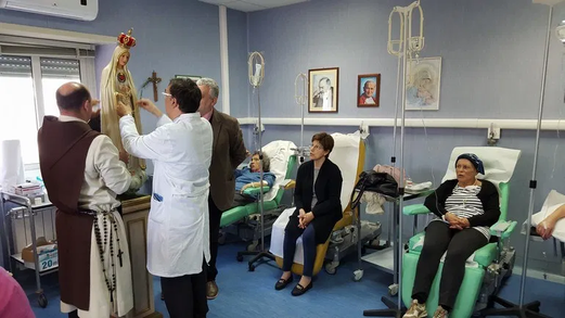 Ogni mattina, dopo il saluto a Maria, il S. Rosario, la Santa Messa e le lodi, gli Araldi del Vangelo hanno accompagnato, insieme a ministri straordinari dell’Eucarestia e a volontari della parrocchia, la statua della Madonnina di Fatima nelle case di ammalati e anziani, sempre della nostra parrocchia. E per loro è stato molto bello incontrare anche un nonnino di ben cento anni! A tutti hanno donato parole di gioia e di conforto. Bella esperienza è stata vissuta anche facendo visita al centro oncologico e al centro emodialisi della nostra isola. I pazienti, con sguardo commosso e fiducioso, hanno offerto a Maria il proprio dolore ed hanno chiesto, se è volontà del Padre, la guarigione sia fisica che spirituale. Pomeriggio e sera invece, la statua della Madonnina di Fatima, è sempre stata presente in parrocchia, dove la Santa Messa serale, animata ogni sera da uno dei cori parrocchiali, è stata sempre preceduta dal Santo Rosario e dal canto dei Vespri.